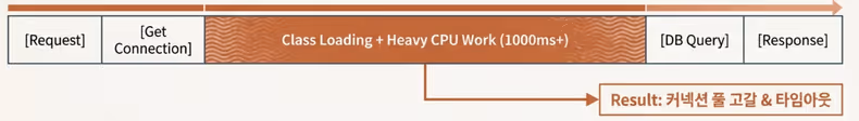 결국, 실제 HTTP 요청을 처리하고 DB와 통신하는 데 필요한 수많은 라이브러리 클래스들은 첫 요청이 들어왔을 때 비로소 로딩되고 있었습니다.